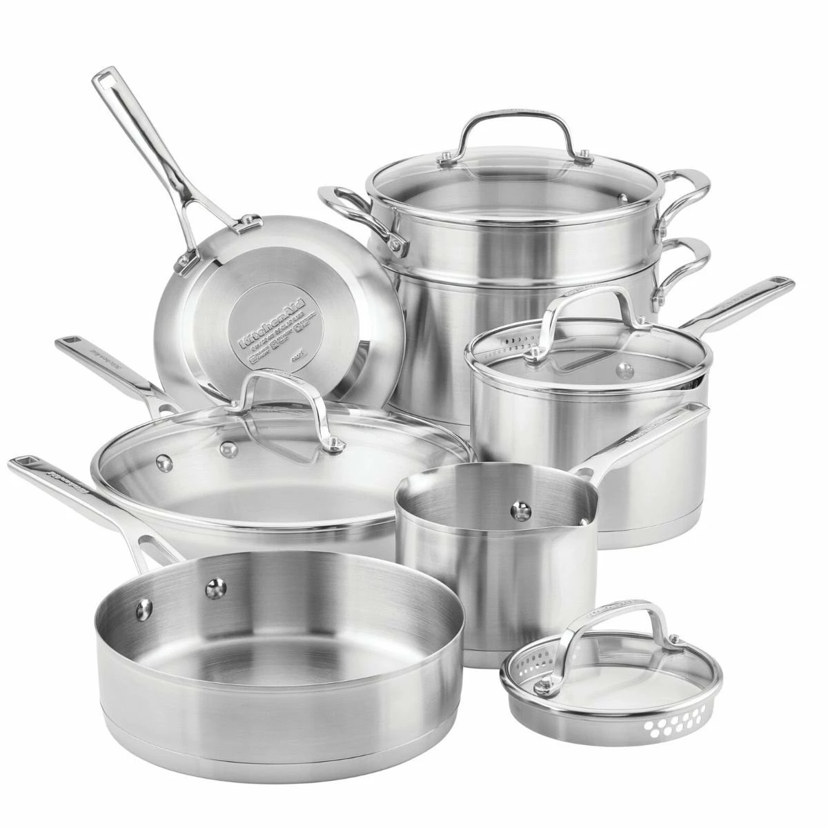 KitchenAid Stainless Steel 3-Ply Base 11-Piece Cookware Set Features: