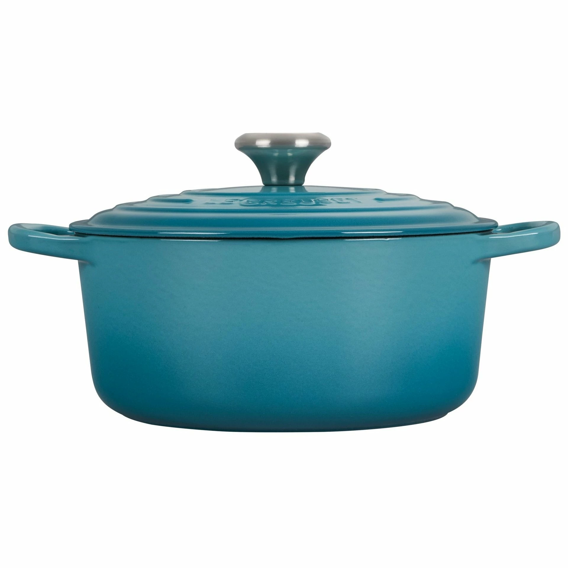 Le Creuset 4.5 Qt. Round Signature Dutch Oven with Stainless Steel Knob (Caribbean Blue) Features: