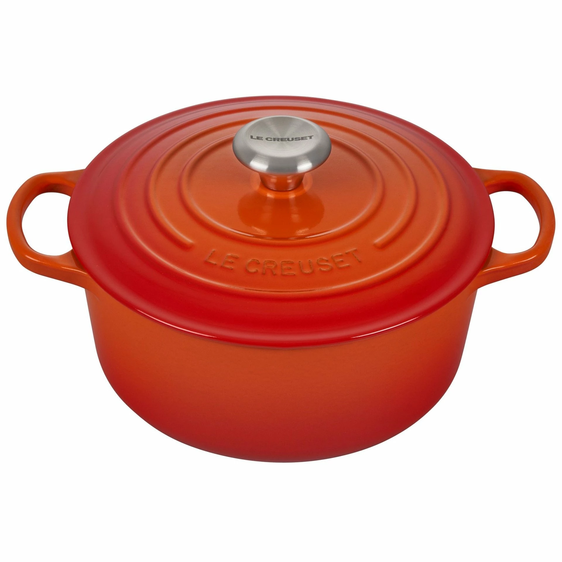 Le Creuset 4.5 Qt. Round Signature Dutch Oven with Stainless Steel Knob (Flame Orange) Features: