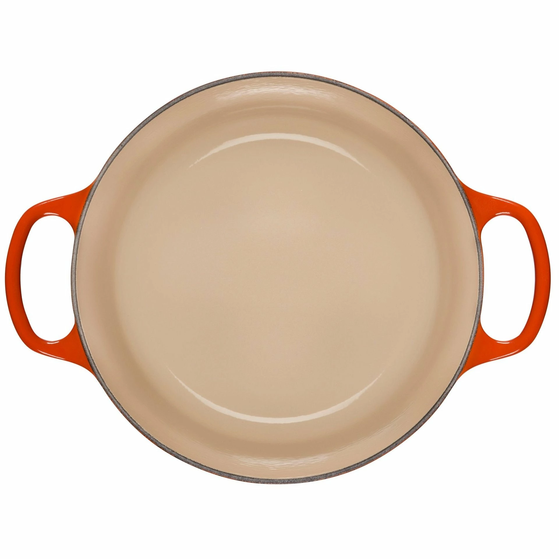 - Sand-colored interior enamel makes it easy to monitor food as it cooks, preventing burning and sticking