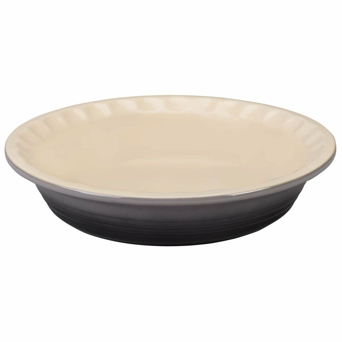 - Le Creuset 9″ Fluted Heritage Pie Dish | Oyster Grey – At 9 inches across by 1.5 inches tall, the Le Creuset PG1855 Heritage pie dish is a good option for making deep-dish apple pies with golden latticework, cheesecakes with buttery graham-cracker crusts, or pumpkin pies & pecan pies for holiday get-togethers. The stoneware used in Le Creuset’s pie bakers is chosen for its even heat distribution and thermal resistance, able to withstand high temperatures (over 2,000° F), and transfer straight from the oven to the refrigerator without cracking. A thick, lustrous glaze prevents moisture from warping the pie pan and itself resists scratching from knives and staining from berries & pie filling. The interior is nearly nonstick for easy pie release and quick cleanup. A dimpled edge helps to flute the pie crust.