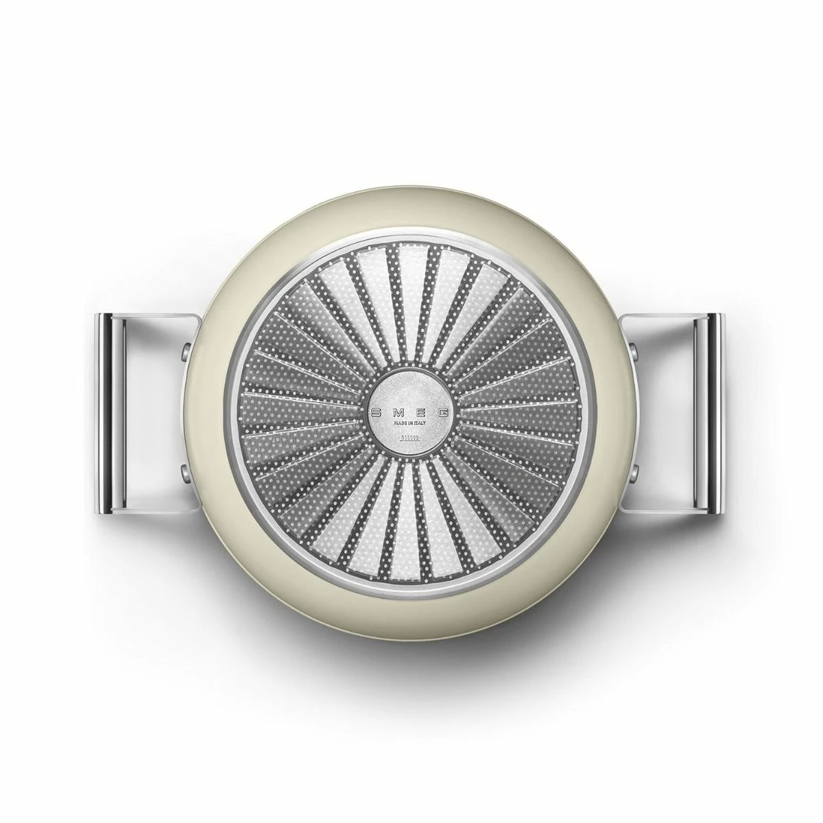SMEG continues to fuse functionality with a vintage look through their cookware collection, and the SMEG 5 Qt. Casserole Dish with Lid in Cream is one of those fabulous pieces that must be an addition to your kitchen! Designed by the Italian firm Deepdesign and modeled after a 1950s-kitchen style, the casserole dish also features a matte cream finish with ribbed stainless-steel handles and a tempered glass lid, exhibiting a high style to the table or stove. The pot is made from quick-heating aluminum and coated in PFOA-free Teflon to eliminate having to use a heavy amount of cooking oil!
